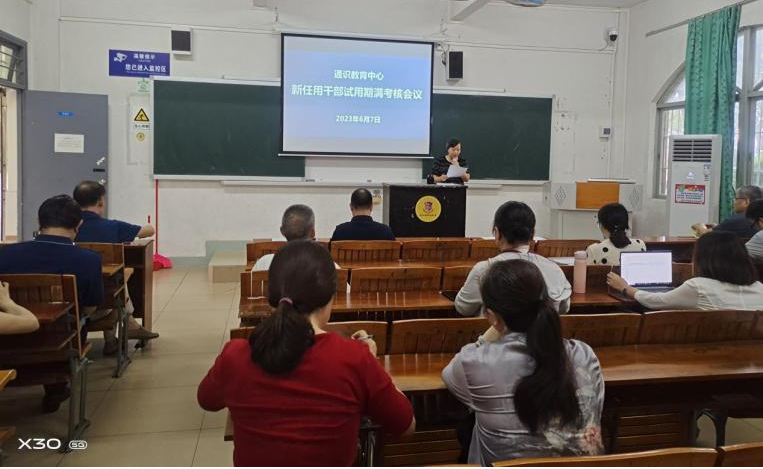 2023年6月7日下午两点半,学校干部考核小组第十小组在海纳楼107课室召开了新任用干部试用工作期满考核会议。通识中心全体教师参会,考评小组组长、中心主任罗群主持会议。罗主任首先宣读了学校有关考核工作方案并介绍了我中心被考核人的基本情况等。会议第二项由被考核人通识中心综合办公室副主任麦思颖进行录像述职报告,她从德、能、勤、绩、廉等方面,对去年10月份以来的工作履职情况做了总结和汇报,既有工作经验,又有努力方向。第三项为参会者对考核对象的述职报告进行民主测评。最后,考核小组组长、中心主任罗群宣布考评结果,进行了总结讲话。