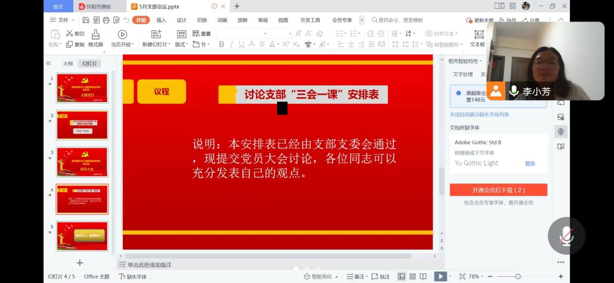 2023年5月31日,通识教育中心创新创业学院党支部在腾讯会议举行主题党日活动。活动由李小芳副书记主持,全体党员参加,讨论了支部“三会一课”工作安排。
